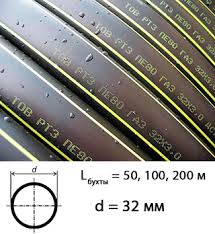 Газовая труба ПЭ100 SDR11 32х3 мм (ГОСТ Р 58121.2-2018) — полиэтиленовая труба низкого давления (ПНД) черного цвета с желтой маркировкой/полосами, предназначенная для подземных газопроводов. Рассчитана на рабочее давление до 10-16 атмосфер (PN16). Обладает высокой стойкостью, гибкостью, поставляется в бухтах (обычно 50-100 м) или отрезках.